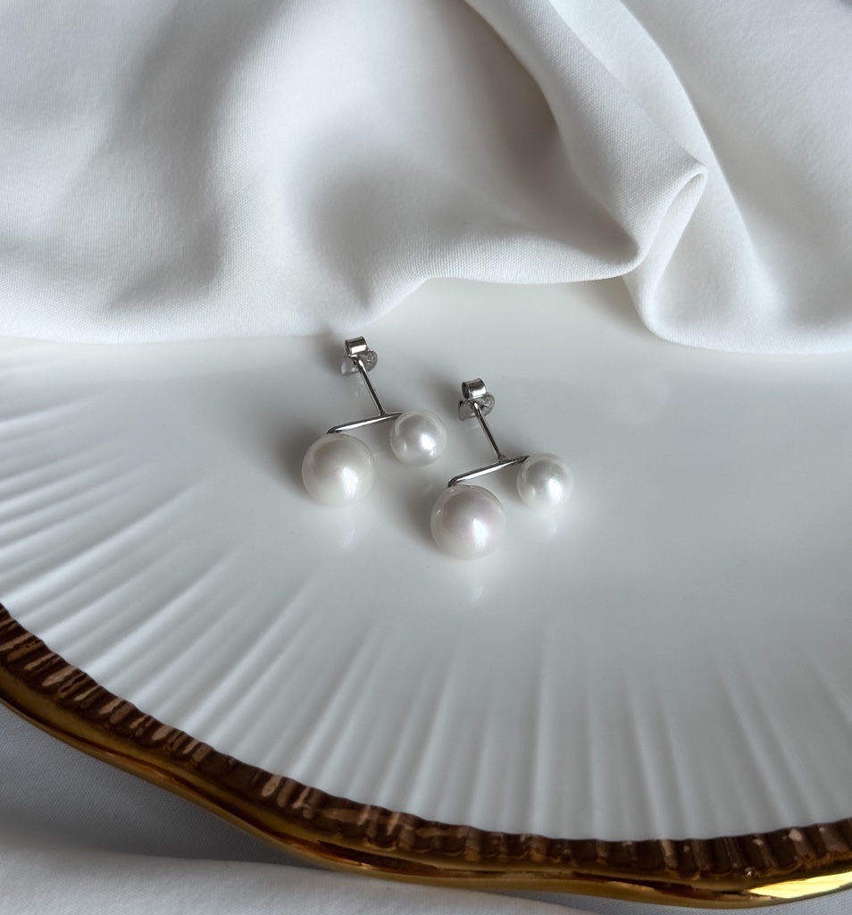 Klasszikus elegancia modern csavarral. Ez a S925 sterling ezüstből készült fülbevaló különleges, két gyöngyhatású gömbből álló kialakítással rendelkezik.. A letisztult rúd modern, kifinomult megjelenést kölcsönöz a fülbevalónak.