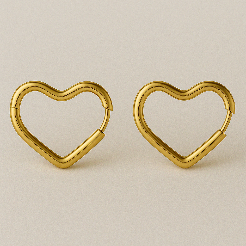 Az Amoura fülbevaló a letisztult romantika megtestesítője. A szívformába hajlított, aranyszínű karikák minimalista stílusban idézik meg a klasszikus érzelmek világát – modern, mégis időtlen megjelenéssel. A sima, lekerekített vonalak és a finoman fénylő felület lágy eleganciát sugároznak, amely bármilyen öltözéket különlegessé tesz.