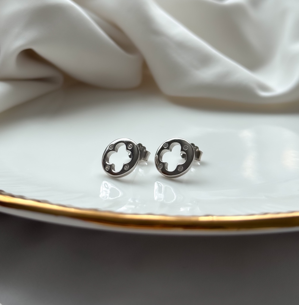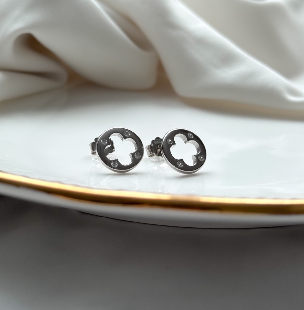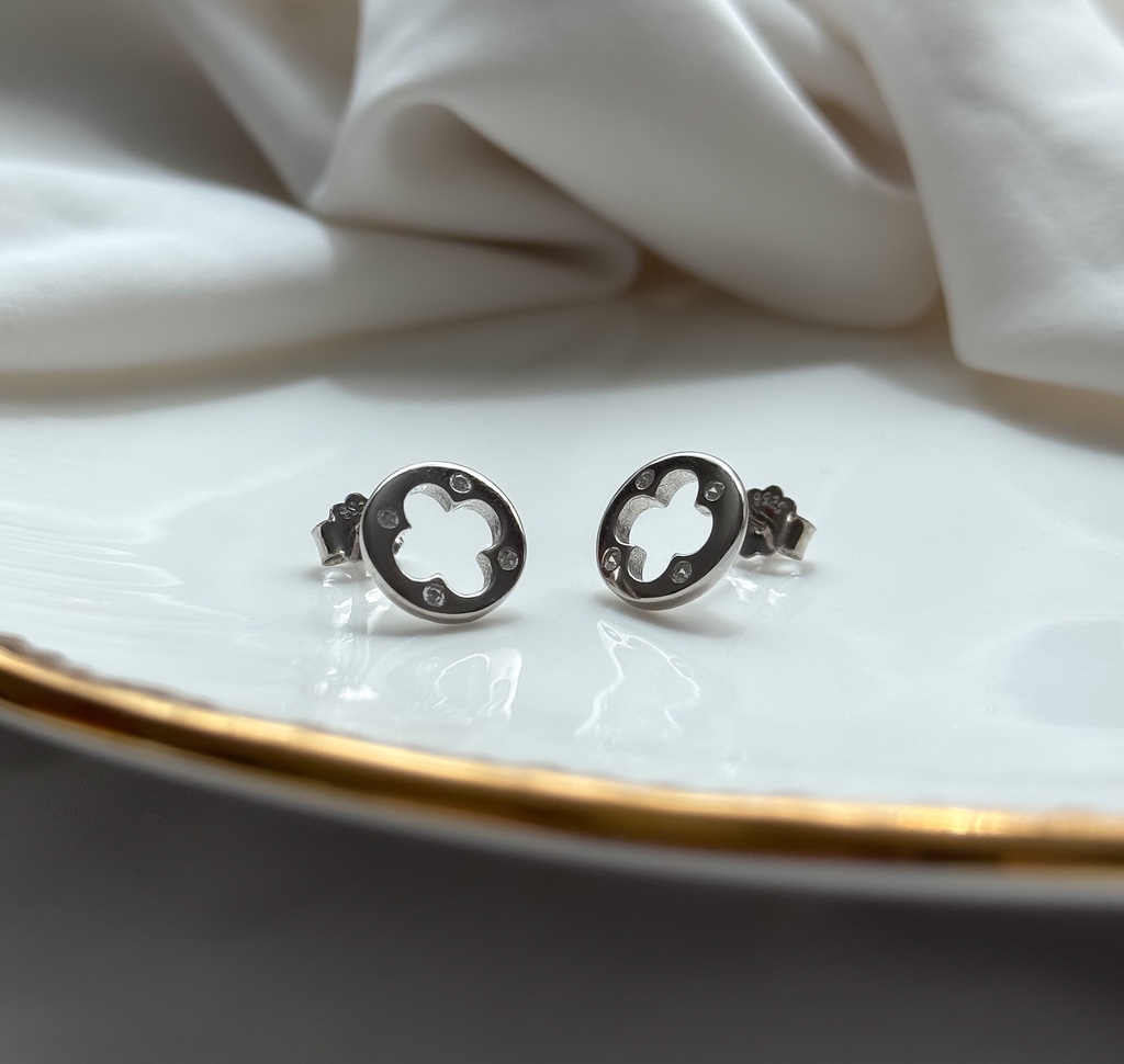 Anyag: 925 sterling ezüst I Minta: Virág formájú kivágás és négy apró kő I Záródás: Stekkeres (bedugós) I Letisztult és stílusos megjelenés I Finoman fényes, elegáns felület
