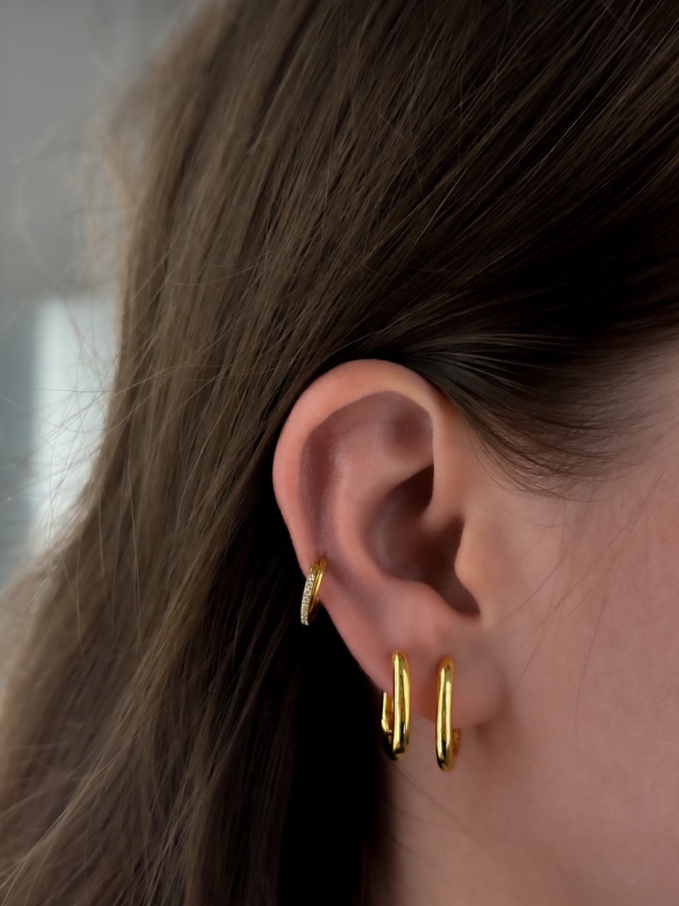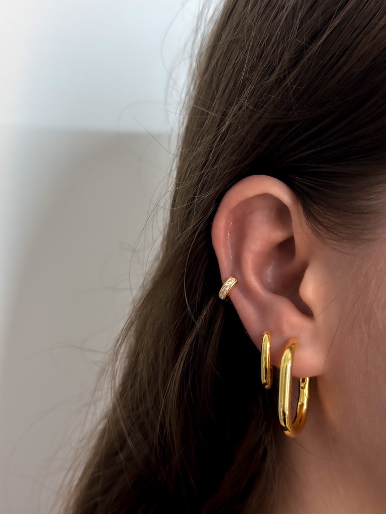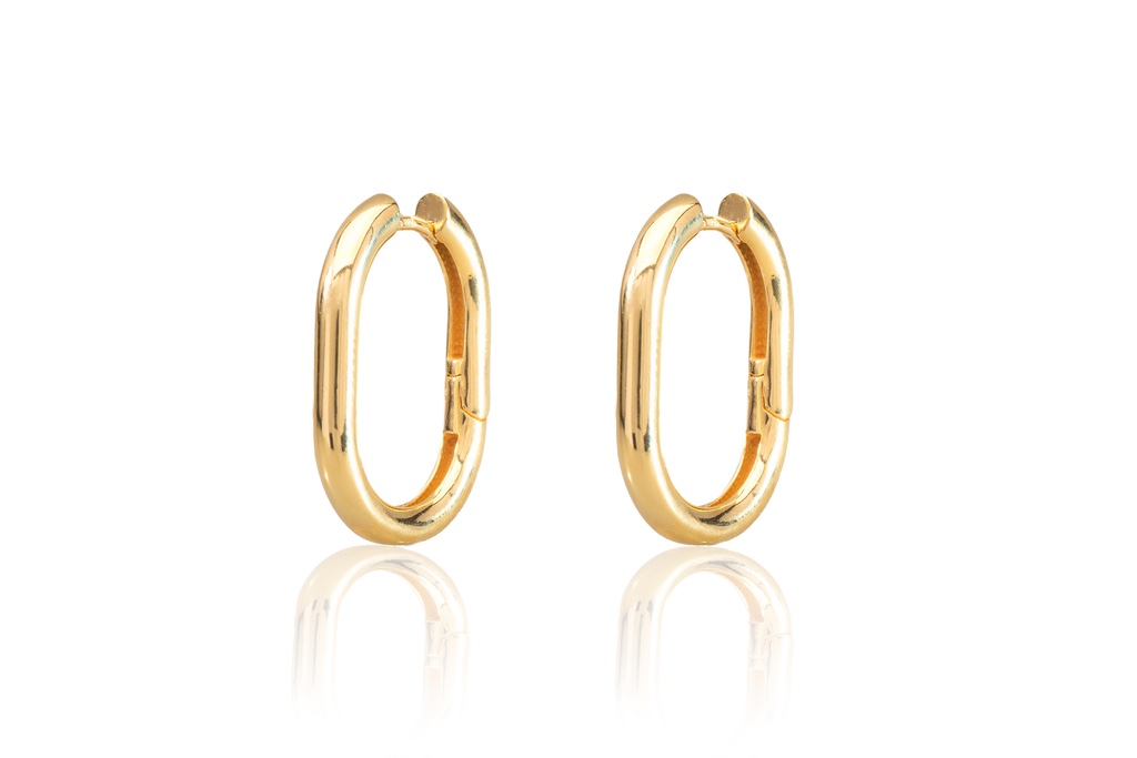 Modern minimalizmus találkozik a prémium anyagokkal ebben a stílusos ovális karika fülbevalóban. A fülbevaló S925 sterling ezüstből készült, és 18 karátos arannyal van bevonva, 3 mikron vastagságban, ami biztosítja a tartósságot és a fényes, luxus megjelenést.