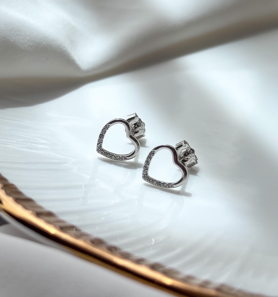Ez a romantikus hangulatú, mégis letisztult szív formájú fülbevaló 925 sterling ezüstből készült, és a szív vonalát finoman csillogó cirkónia kövek díszítik. Könnyed, légies kialakítása miatt tökéletes választás a mindennapokra, de alkalmakra is elegáns kiegészítő. Tökéletes ajándék lehet szeretteidnek vagy saját magadnak – finom, nőies ékszer, ami minden stílushoz illik.