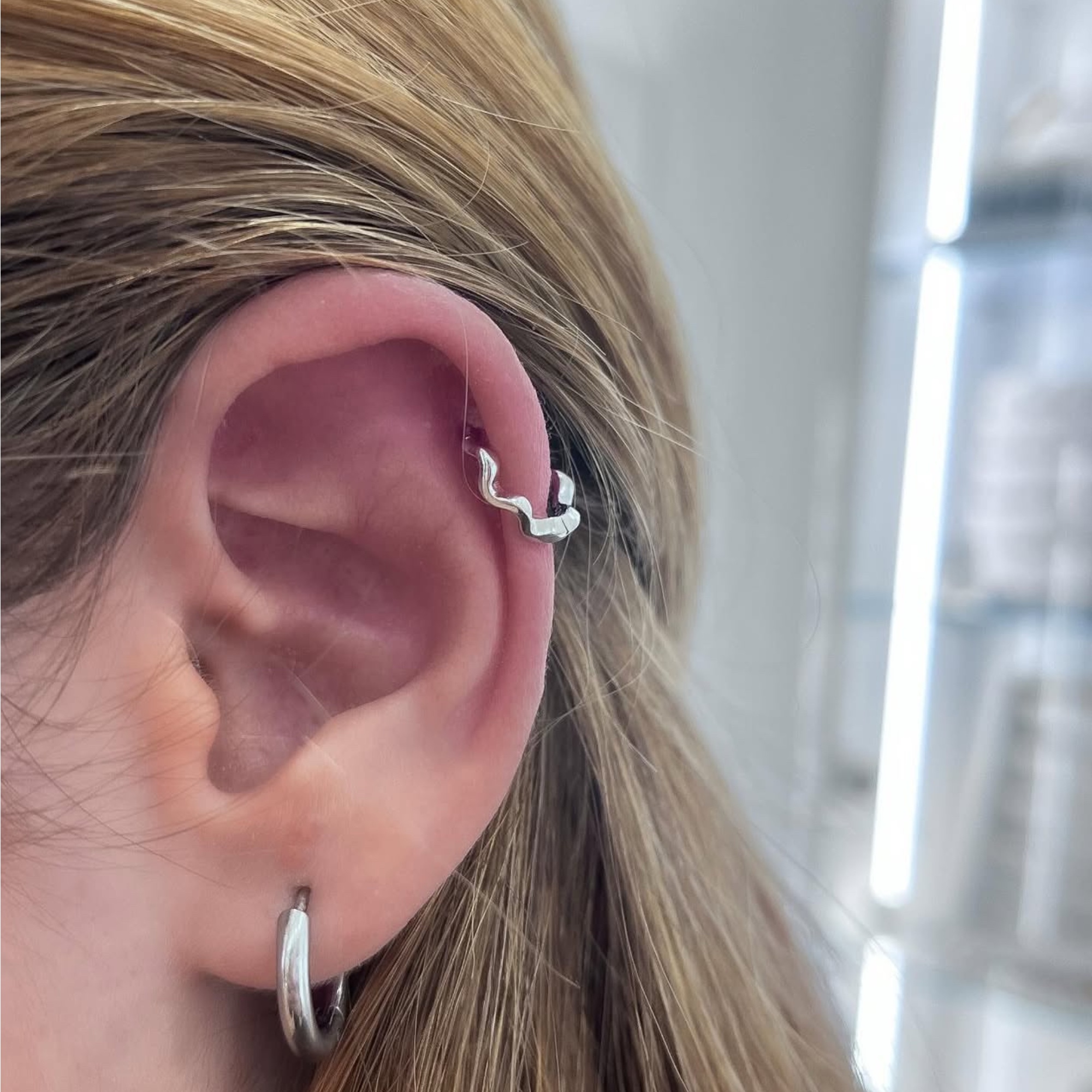 A piercing belső átmérője 8 mm, amely ideálissá teszi különösen helix piercinghez, de más fülporc helyeken is kényelmesen viselhető. A hullámos forma egyedi karaktert ad az ékszernek, miközben megőrzi a karika klasszikus eleganciáját.