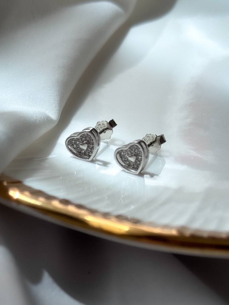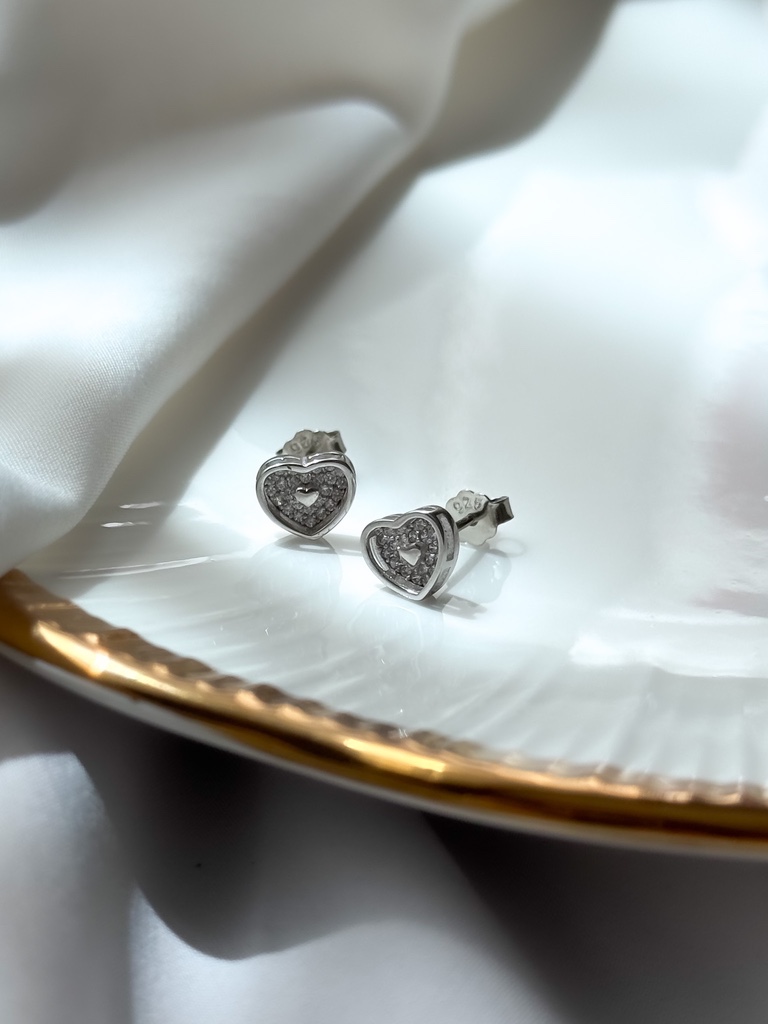 Ez az édes, mégis elegáns szív formájú fülbevaló 925 sterling ezüstből készült, belsejében apró, fényesen csillogó cirkónia kövekkel kirakva. A közepén elhelyezkedő szív még különlegesebbé teszi ezt a romantikus darabot. Tökéletes választás mindennapi viseléshez vagy ajándékként egy különleges alkalomra. Finom, nőies, időtálló stílus.
