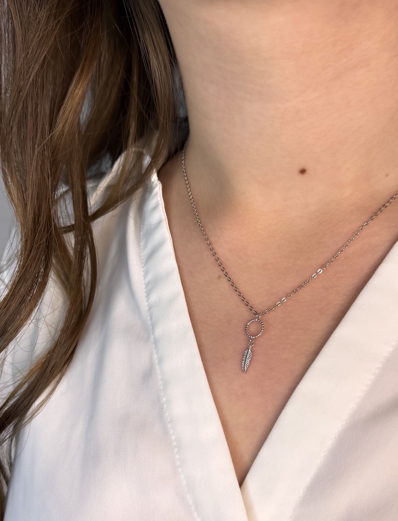 Ez a stílusos nyaklánc 925-ös finomságú, valódi ezüstből készült, amely tökéletes választás lehet a mindennapi elegancia kedvelőinek. Az ékszer letisztult, mégis különleges megjelenését a medál teszi igazán egyedivé: a finoman csavart karika lágy mozgással kapcsolódik egy gyönyörűen kidolgozott toll formájú függőhöz. A toll a szabadság, a könnyedség és a lelki béke szimbóluma, így ez a nyaklánc nemcsak ékszerként, hanem személyes jelentéssel bíró kiegészítőként is viselhető.