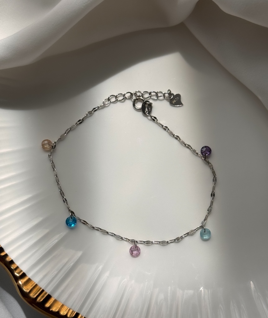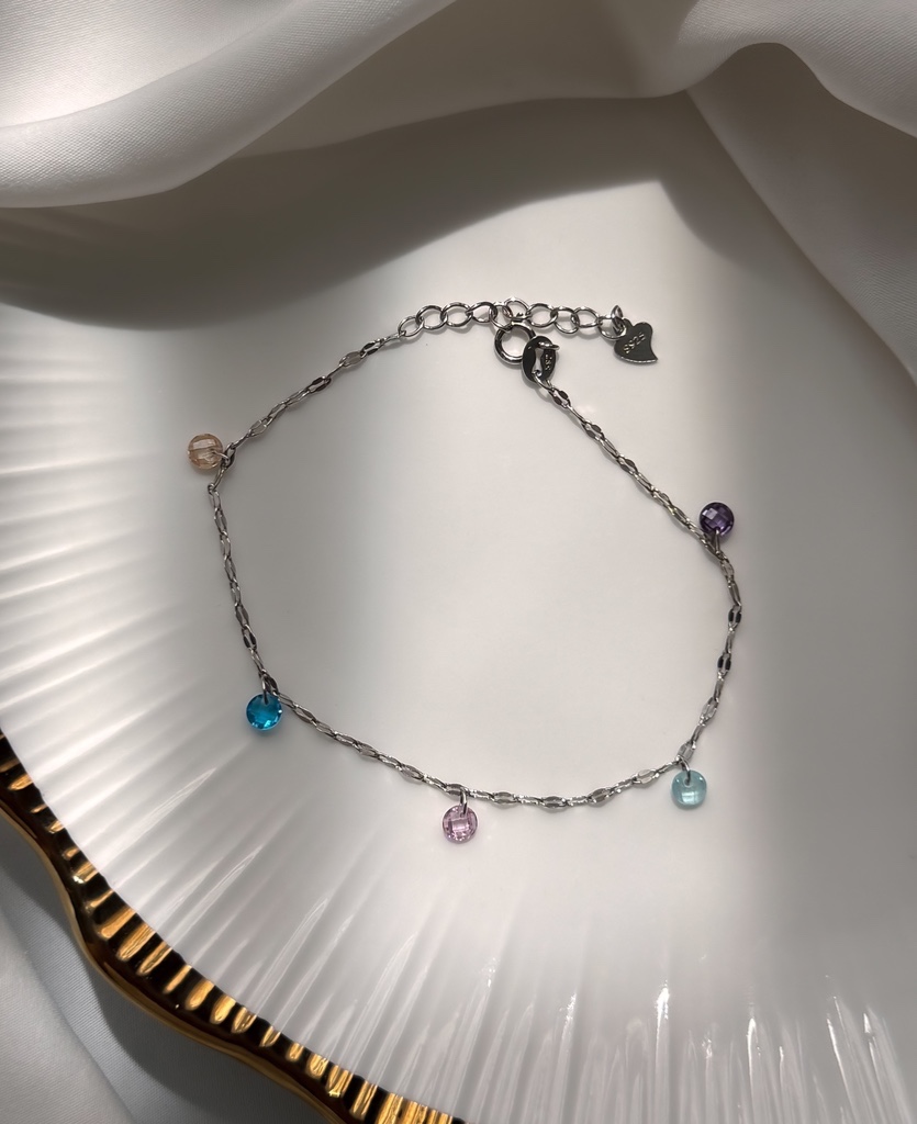 Ez a színes díszes 925-ös sterling ezüst karkötő igazi ékszerdobozba illő darab. A finoman csillogó, sokszínű díszek játékosan tükrözik a fényt, miközben harmonikusan illeszkednek az ezüst eleganciájához. Tökéletes választás azoknak a nőknek, akik szeretnek kitűnni, mégis megőrzik kifinomult stílusukat.
