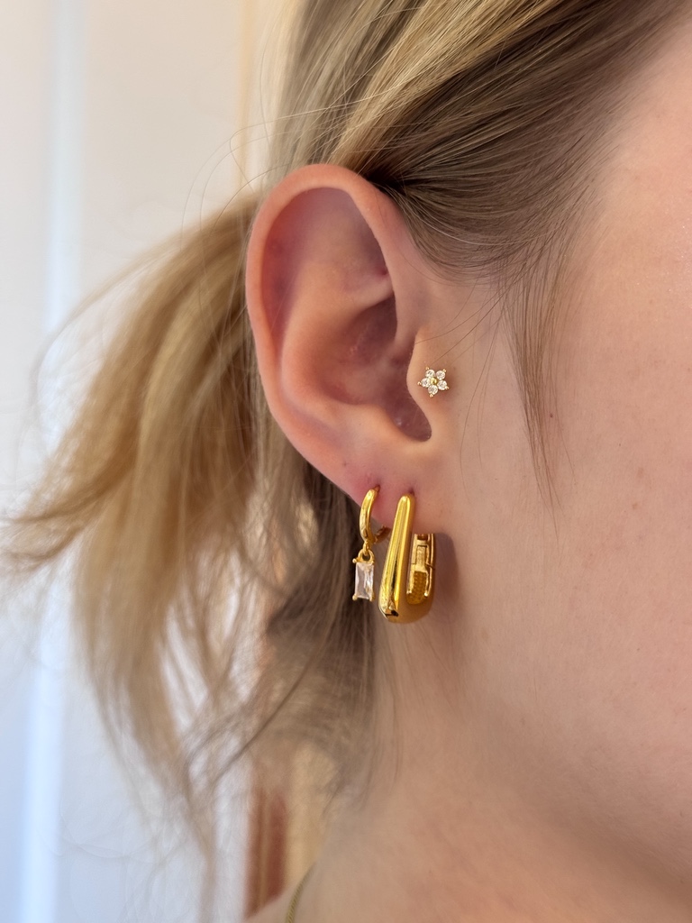 A különleges csepp alakú ovális forma kiemelkedik a hagyományos karikák közül, miközben tökéletesen illeszkedik egy letisztult, kortárs stílushoz. Elérhető arany és ezüst színben is.