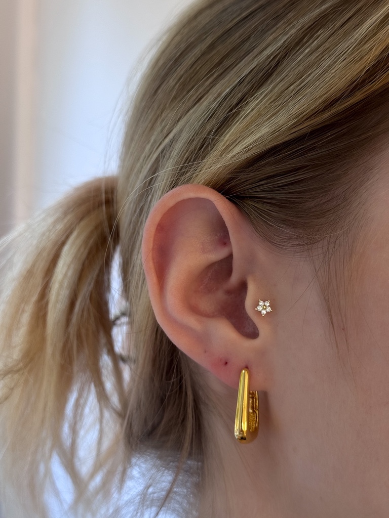 Kifinomult, modern forma, prémium alapanyagokkal. Ez az egyedi kialakítású ovális karika fülbevaló S925 sterling ezüstből készült, és 3 mikron vastagságú 18 karátos aranybevonattal lett ellátva a hosszan tartó csillogás érdekében.